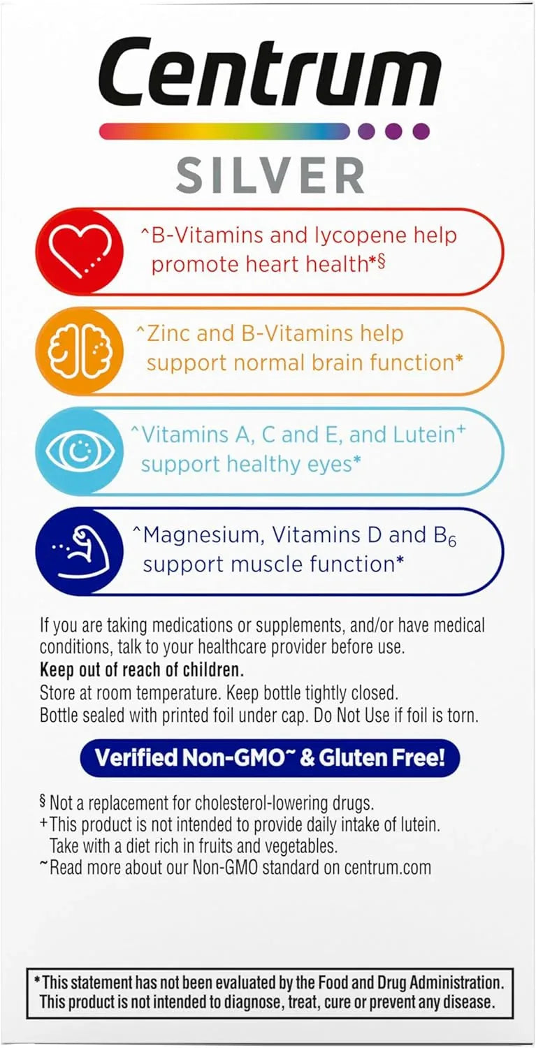 At Malisa Mobility, we care about your total well-being. Centrum Silver Multivitamin for Men 50 Plus is more than just a supplement; it’s a comprehensive health partner. Specifically designed to support heart, brain, and eye health, this formula is now clinically shown to support memory and cognition in older adults, helping you stay sharp and active as you age.
