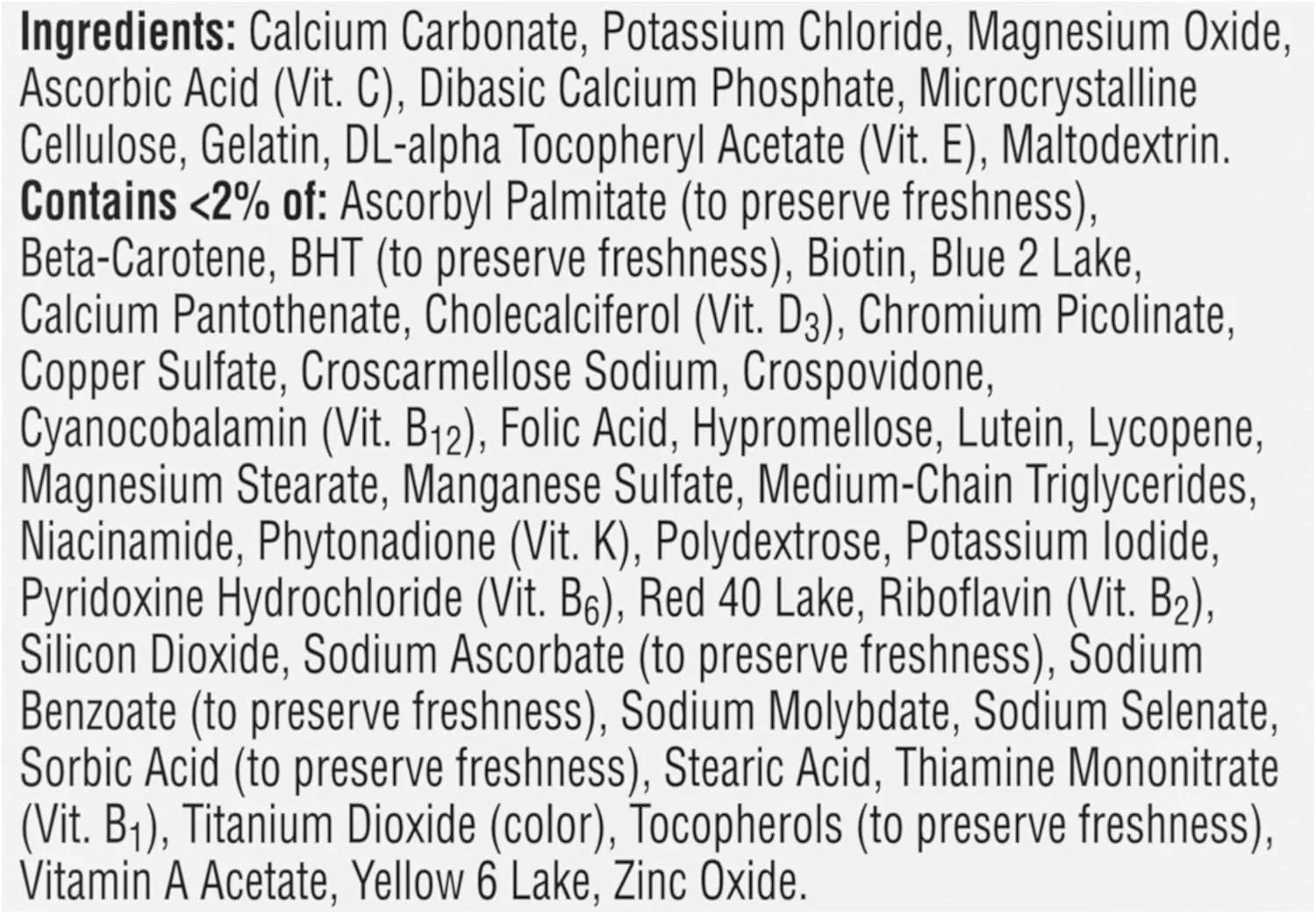 - Heart & Eye Health: Contains B-Vitamins to promote heart health and a blend of Lutein with Vitamins A, C, and E to support healthy vision.