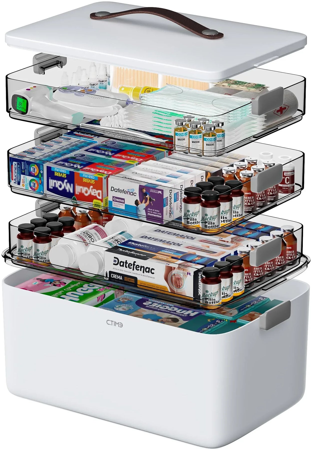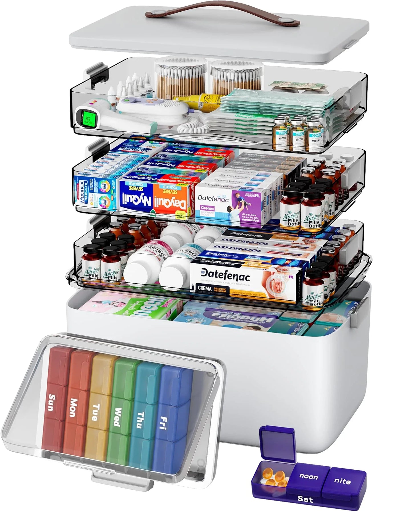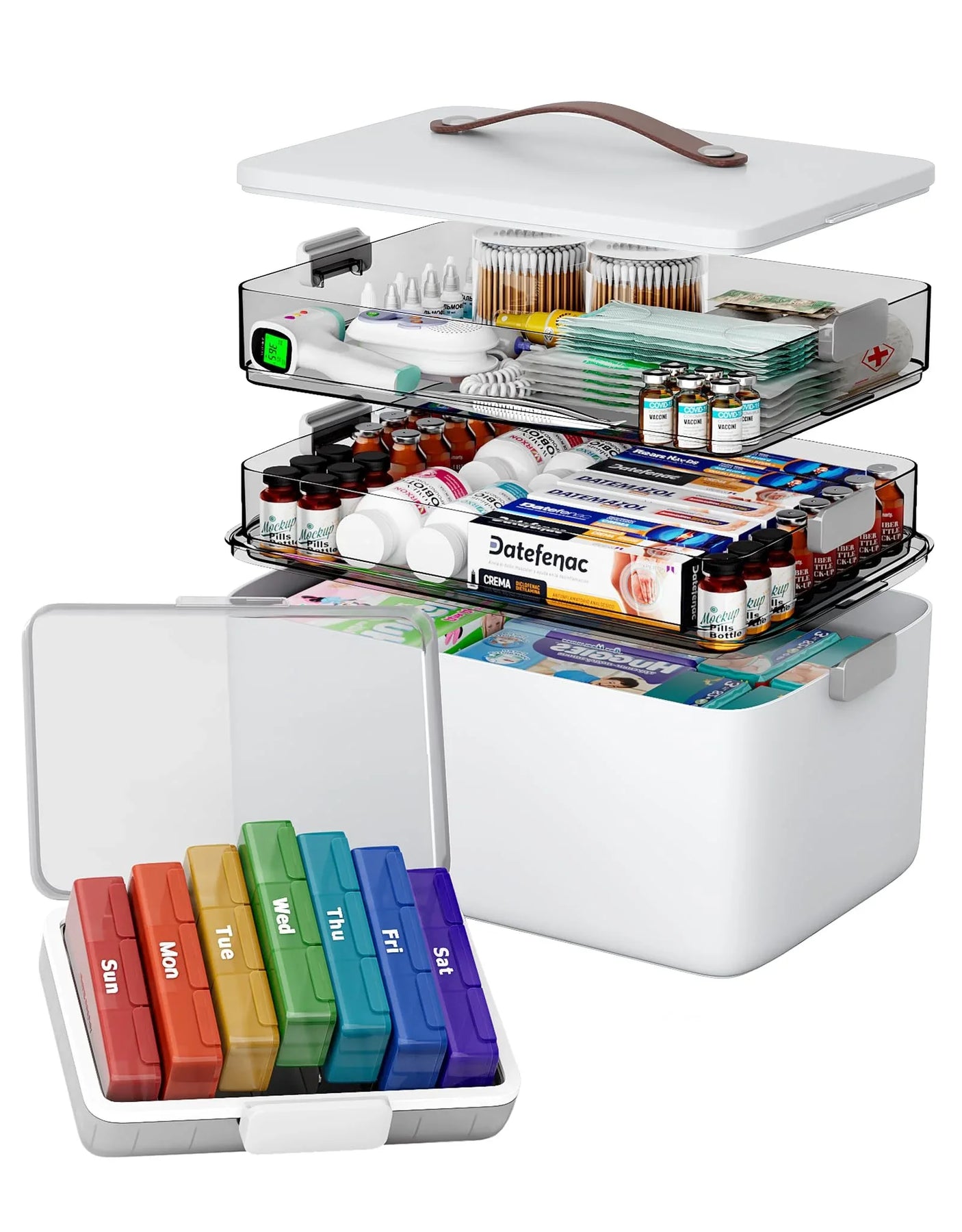 - 3-Layer Cantilever Structure: Maximizes space and keeps different types of medicine separated and visible the moment you open the lid.