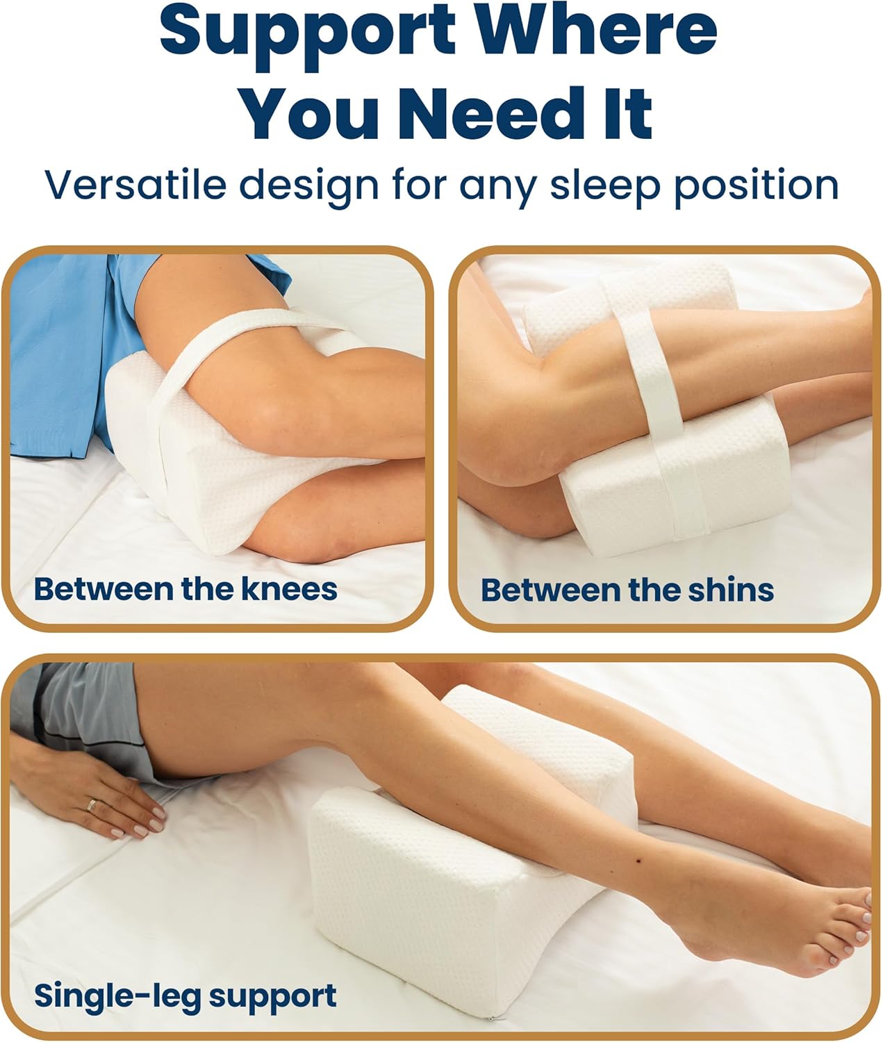 Expert Tip: To maximize sciatica relief, ensure the thickest part of the pillow is positioned directly between your knees. This separates the legs just enough to take the tension off the sciatic nerve while maintaining a straight line from your hip to your ankle.